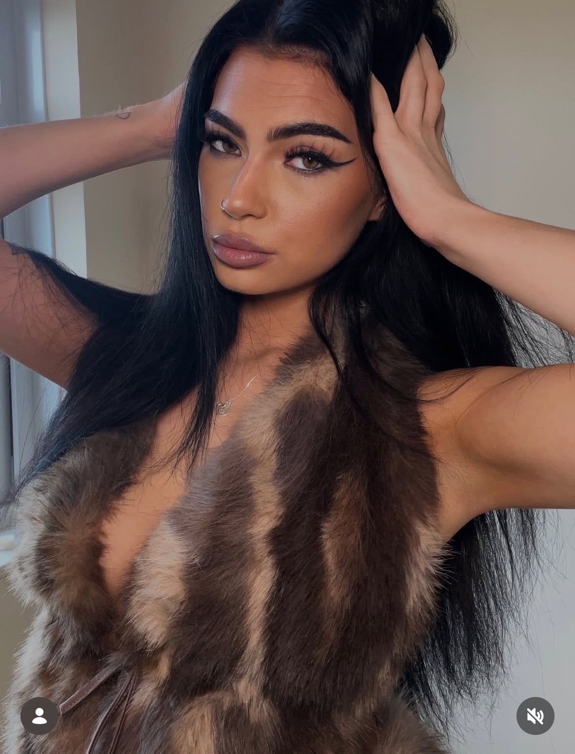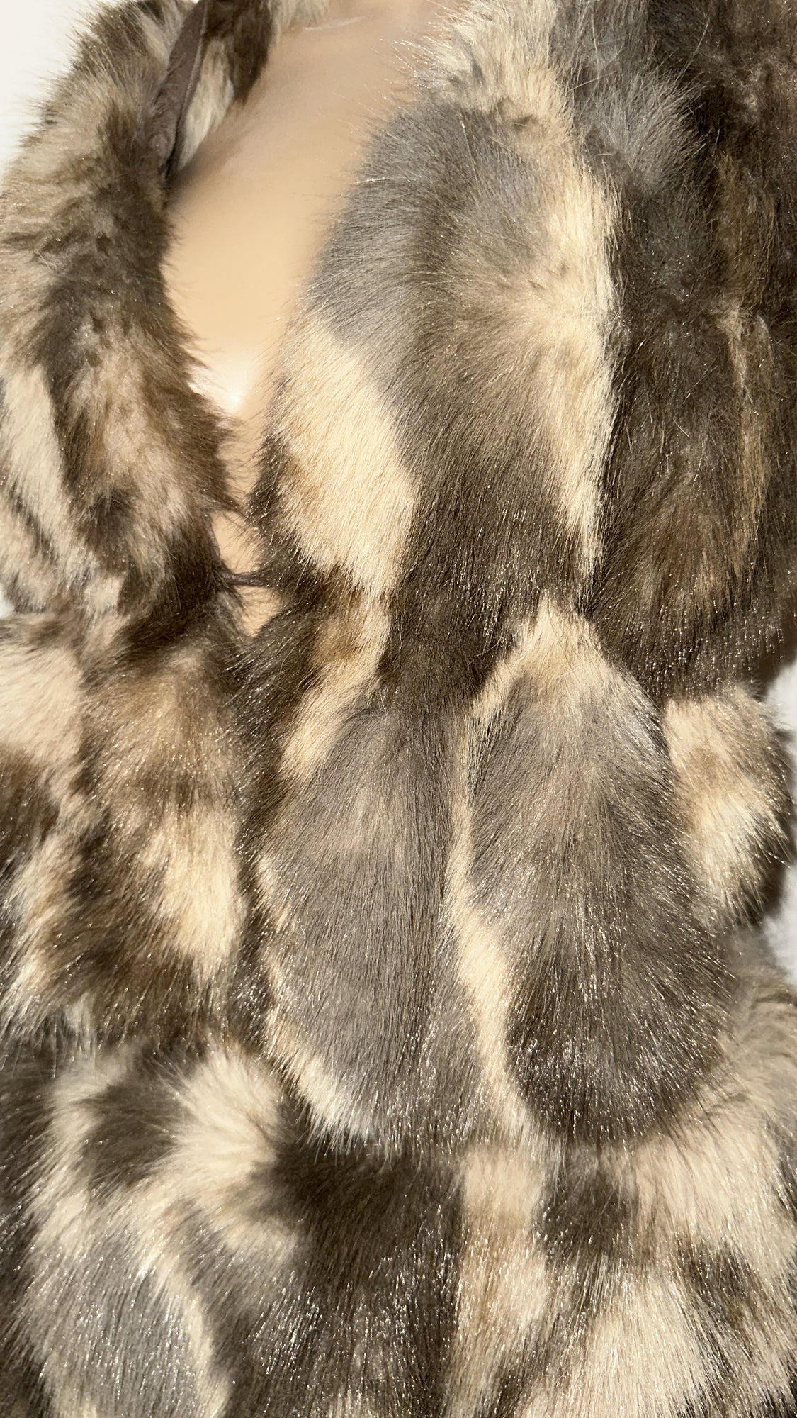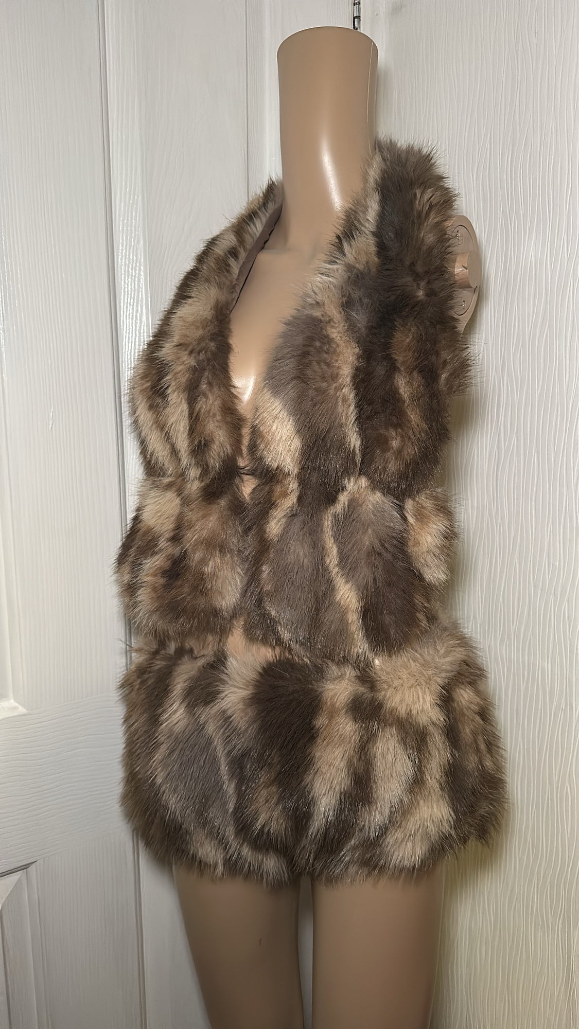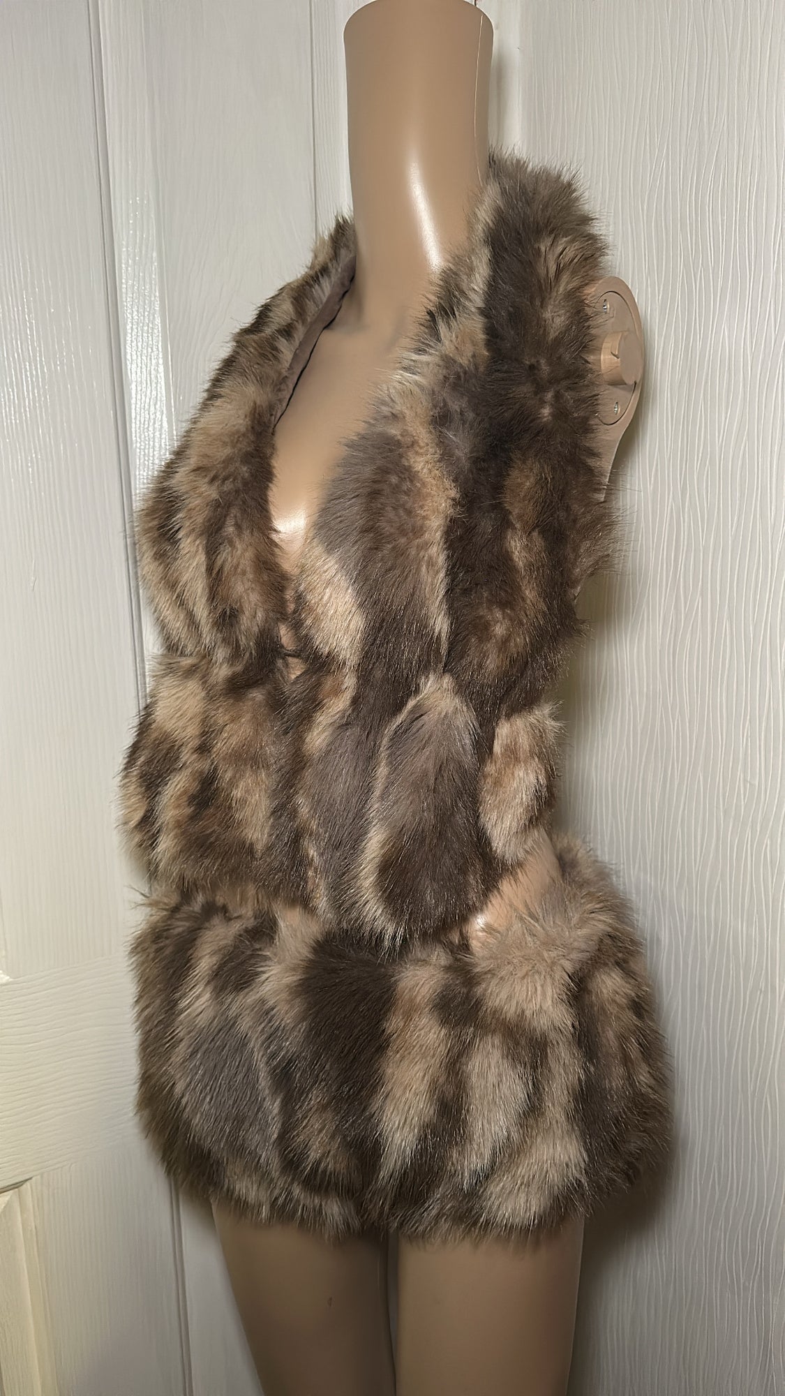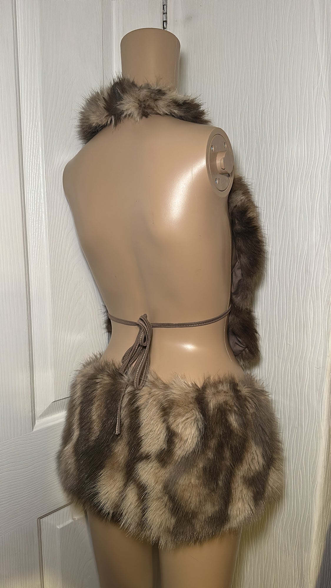 BROWN FAUX FUR HALTER NECK TOP HOT PANTS TWO PIECE