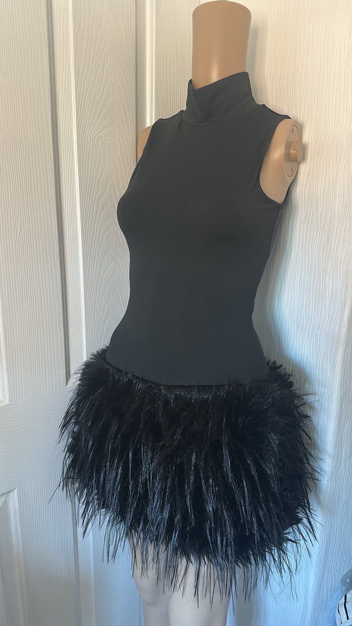 HALLOWEEN BLACK SLINKY BODYCON DRESS FUR TRIM
